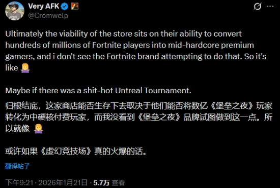 在提及Epic借助免费游戏吸引玩家的平台策略时,Douse表示:“该商店的可持续发展,关键在于能否将数亿《堡垒之夜》玩家转化为中度至重度的付费核心玩家,然而我并未观察到《堡垒之夜》品牌在进行这方面的尝试。”