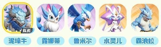 阵容组成:泥墇牛(队长)+露娜蒂+鲁米尔+水灵儿+霸浪蛟