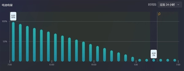 可以看到从第一天早8点开始循环播放时电量为99%,到第二天凌晨4点左右电量剩余3%自动进入休眠,历时约20个小时,表现相当出色。