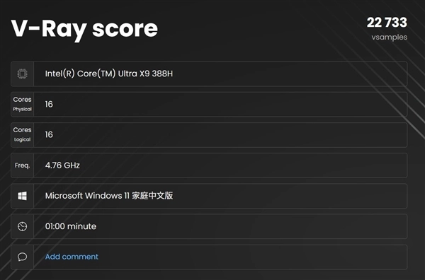 酷睿Ultra X9 388H处理器在V-Ray Benchmark测试中,一分钟采样率达22733 vsamples;Corona 10 Benchmark光线渲染速度为7093796 rays/s;Blender Benchmark的monster、junkshop、classroom三项测试里,1分钟采样率分别是138.94、95.76和68.8 samples,整体渲染性能较上一代有显著提升。