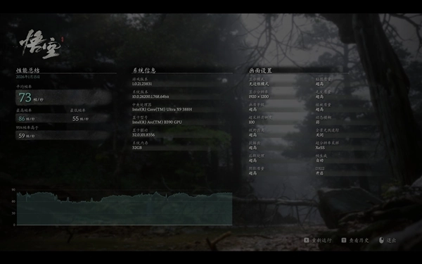 另外,要是用锐炫B390玩游戏,在1920×1200分辨率下其实不用太保守地开低画质。我们把画质调到超高档——也就是仅次于影视级的第二档高画质,锐炫B390运行《黑神话:悟空》的平均帧率能达到73fps,完全能满足动作类3A游戏的流畅运行要求。而且放大图片可以看到,95%帧率都高于59fps,画面流畅度特别稳定,不会出现瞬时大幅掉帧带来的迟滞或卡顿问题。