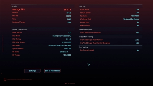另外Xe3架构核显开始支持多帧生成技术,在Intel Graphics Software控制中心里最高可以开启4倍多帧生成,这样的话在运行3A游戏时就会有相当不错的帧率表现。而且如果把锐炫B390放到掌机里的话,游戏体验绝对是秒杀现在所有的Windows掌机了。