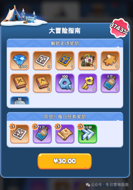 不过要拿到这个东西真的挺难的。毕竟得有10000个冒险币才能兑换这个奖励,而且冒险币不能累计,只能靠这次“雪原大冒险”活动获取。