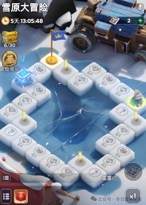 首先我们得先搞清楚雪原大冒险的具体玩法。这个地图总共有26个格子,其中包含1个起点格——当你到达或者路过起点格时,会触发最近获得的两个道具格奖励,同时道具格的经验值会+1;还有4个宝藏格,也就是能获取冒险币的格子;1个探险宝箱格;3个事件格,这些事件格有一定几率让你拿到冒险币;剩下的17个格子则是普通的道具格,道具格是可以升级的,每次到达道具格,该格子就会增加1点经验值,等经验值达到升级条件后,这个道具格的奖励就会升级。需要注意的是,探险宝箱格的位置并不固定,它可能随机出现在任何一个格子上,但能获得累计的奖励。和宝藏格不一样的是,探险宝箱格不仅能拿到冒险币,还可以获取传说通用英雄信物和通用加速。不过大家肯定更想得到冒险币,特别是对于大佬们来说,传说通用英雄信物和通用加速他们都多得用不完。