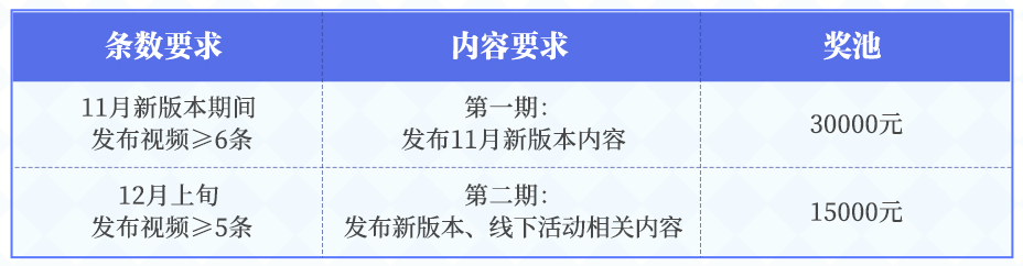 备注:新人指之前未参与生态及首期(10月9日-10月31日)勇士创作团活动(首期如未发布作品,参与第二期活动发布内容也可享受新人激励),结算时每条作品只结算一次,无门槛结算上限5条,其余播放结算上限20条(仅单平台)。