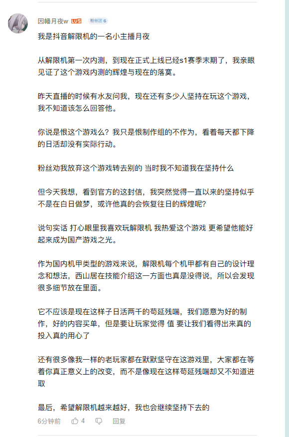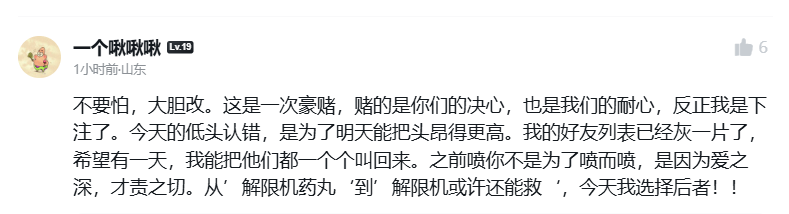 在官方发稿后,尽管玩家们的评论中不乏一些尖锐的批评,但更多的反馈是:相信《解限机》,愿意再给《解限机》一次机会。
