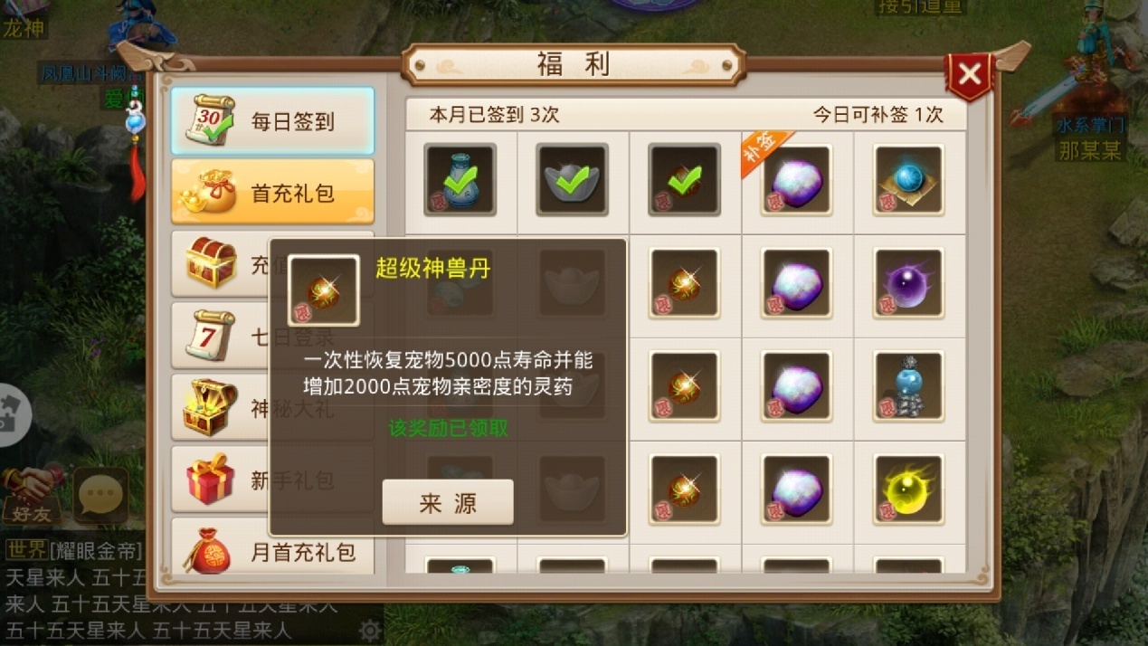 在“福利”界面同样能获得该物品,只要参与签到活动并达到规定次数就能领取,而且赠送的次数颇为可观,差不多每周都能获取一次,问道的游戏官方确实挺人性化的。