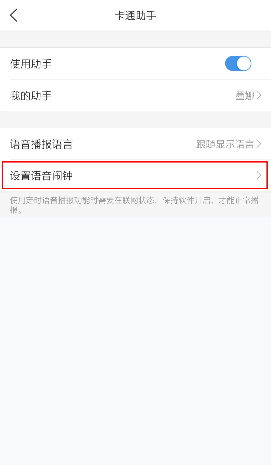 进入后即可设置语音自动播报功能。