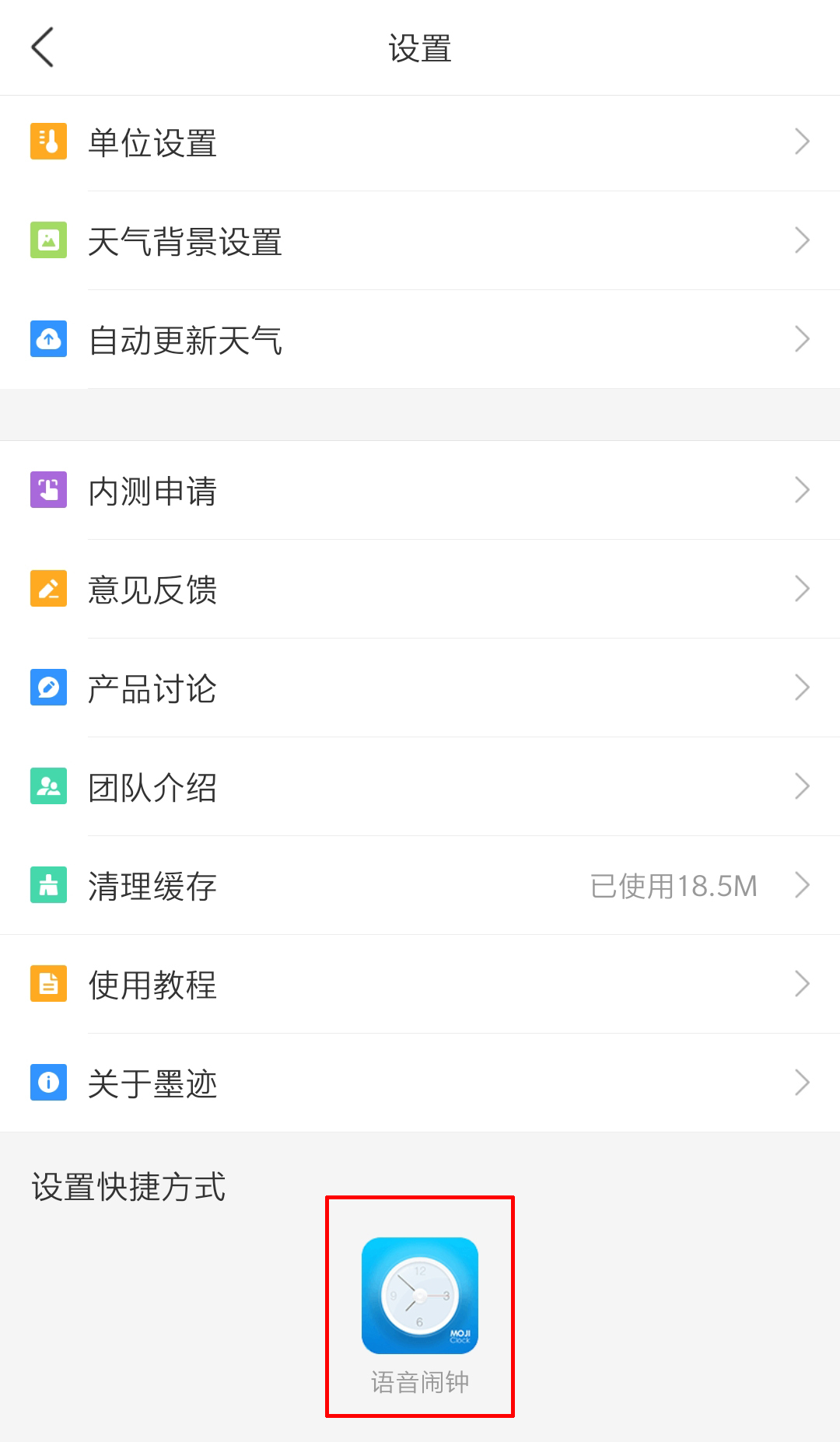 第二种方法,在设置界面下滑至底部,点击快捷方式里的语音闹钟,同样能进入设置界面。