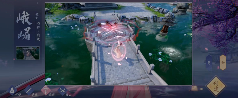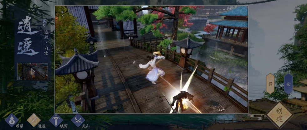 这款游戏里的职业区分内外功,也分近战远程。平民玩家没能力堆属性来撑住近战那种需要抗伤害的身板,所以更建议选远程职业,远程里比较典型的就是峨眉和逍遥这两个。
