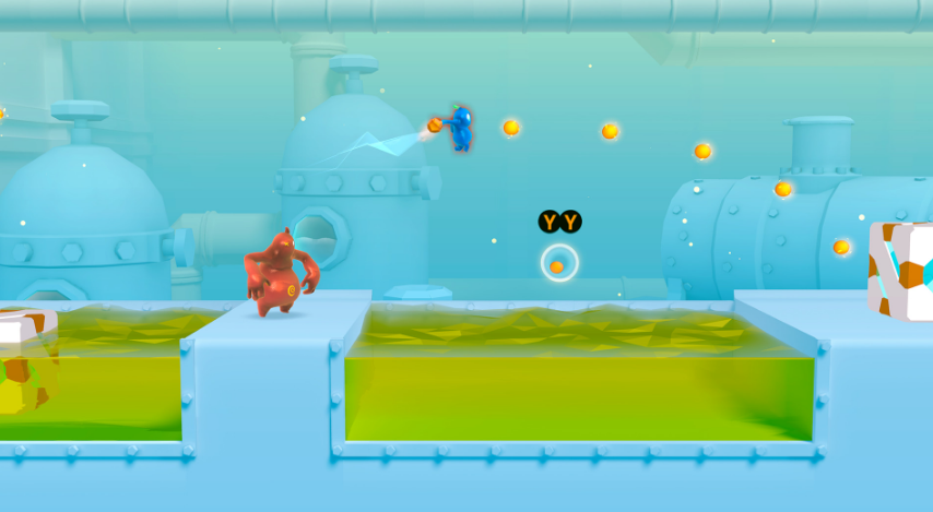 游戏里有两个角色,一个是胖子,一个是瘦子,光看外形就特别搞笑。虽然这是款双人合作闯关游戏,但实际上到处都是互相坑害的操作。游戏关卡数量不少,而且没有生命限制。闯关过程中,果冻人能自由改变身形大小:变小后弹跳力更强,适合攀爬场景;变大后力量更足,适合搬运物品或者扔队友。