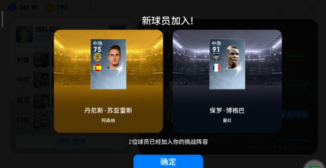 玩家每完成一次特殊队伍的关卡挑战,就能任选两名新球员加入自己的队伍,以此来升级并强化阵容。