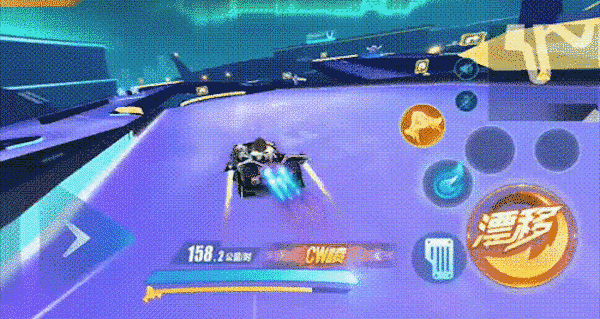 在第4关的直角弯道处,过弯后可以先快速出弯,同时保留小喷暂时不释放,以此延续氮气;接着借助星型弹射装置飞越悬崖,落地时利用落地喷衔接WCWW喷。