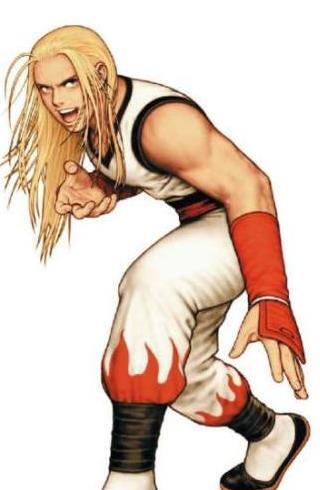 别名“猴子”,是《拳皇97》里战斗机制与其他角色差异显著的强力角色。远距离的腾跃能力和蓄力技“飞舞空裂斩”是他难以应对的游击核心技能。同时,猴子即便没有指令投,依然能对敌人形成强力压制:前跳C的精准逆向判定、角落特定位置无法后防的穿刺攻击等,都是让对手胆寒的利器。MAX超必杀“凤凰斩”既可以通过轻攻击起手衔接,也能融入各类连招——也就是说,猴子爆气后有无数种方式用这招超杀打出一套满血削至残血的连招。要是你不慎在空中被判定更强的“飞舞空裂斩”命中,那么被一套打晕带走,或许已是相对不那么难受的结局了。