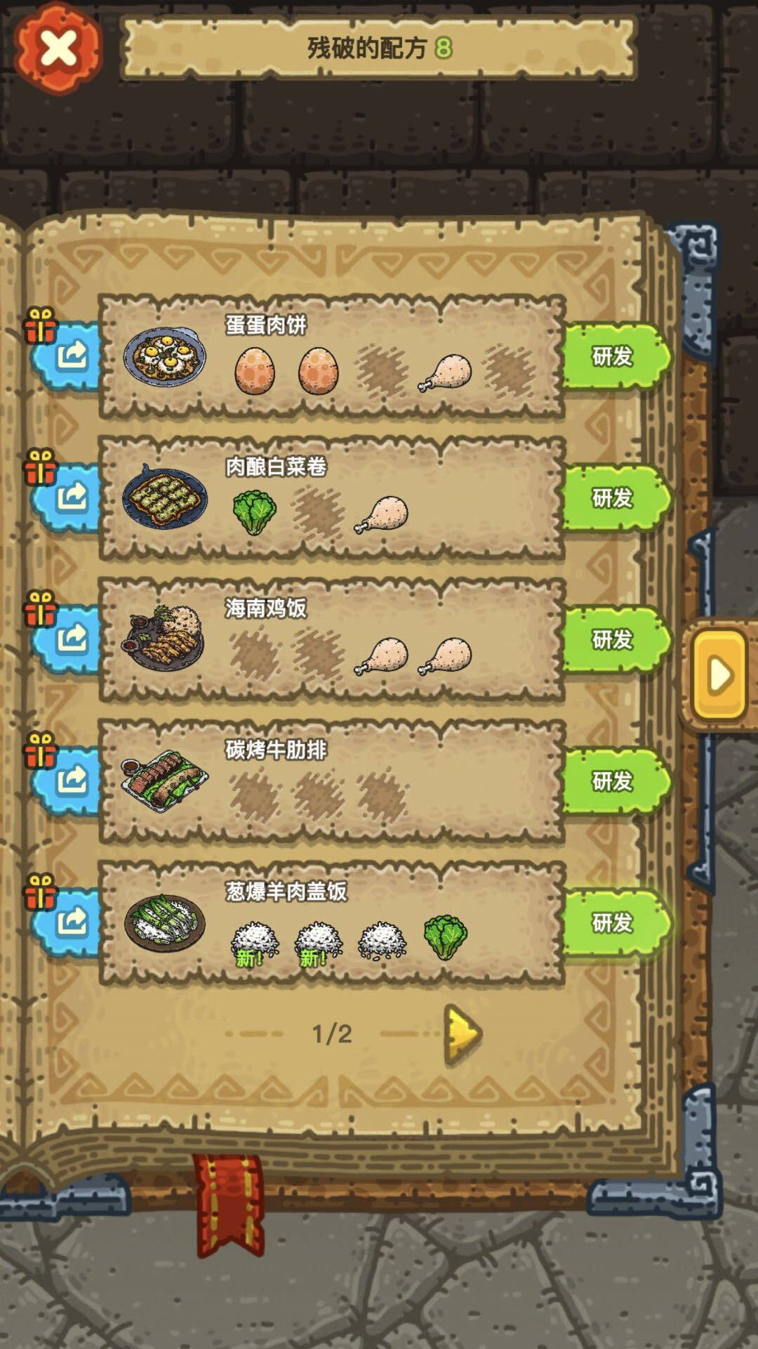 1. 首先点击主界面上的书本图标,进入的就是料理配方界面。