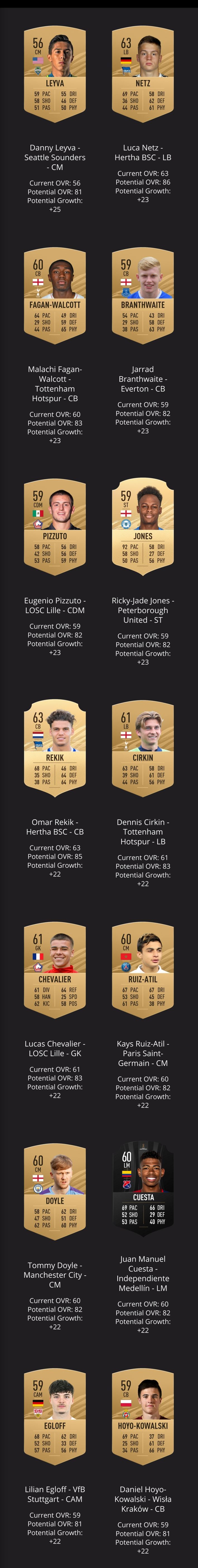 第二个名单是FIFA21铜卡和银卡中成长潜力较高的年轻球员。