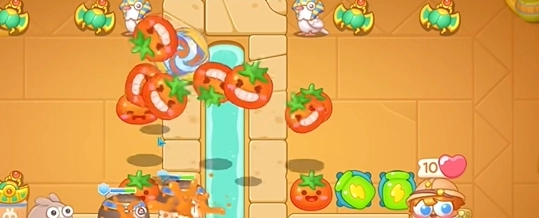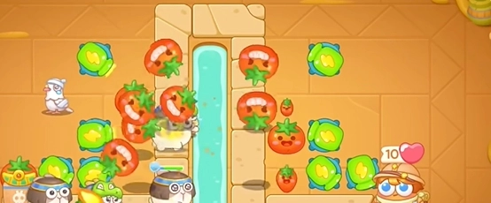 7、最后,在左右两边持续补充多个满级番茄,便可顺利过关。