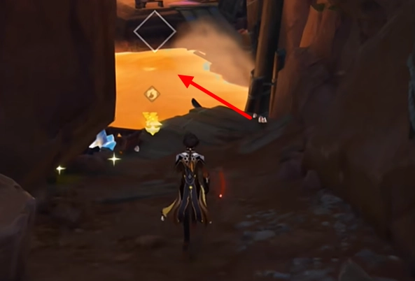 5、持续朝着里面行进,待看到岩浆后,纵身跳入其中。