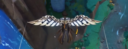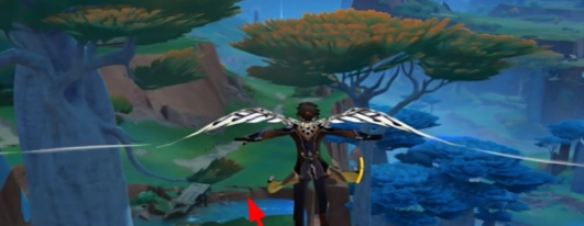 3、随后朝着瀑布下方飞行,最终在亮光点处降落。