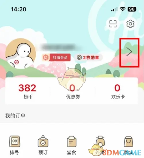 1. 打开手机端海底捞应用,轻点个人中心处的“箭头”标识。