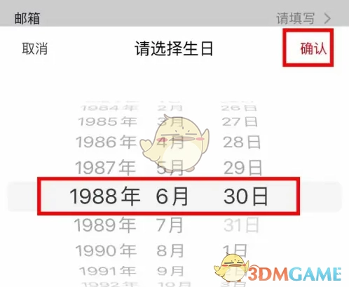 3、当弹窗弹出后,在其中对“出生日期”进行设置,设置完成后点击“确认”。
