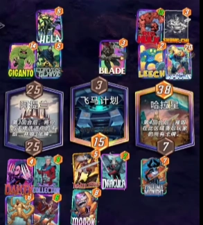无特殊效果:也就是白板卡,一共就七张,分别是黄蜂女,迷雾骑士,震撼者,镭射眼,石头人,憎恶以及浩克。可以被特殊的场地或者卡牌增益。
