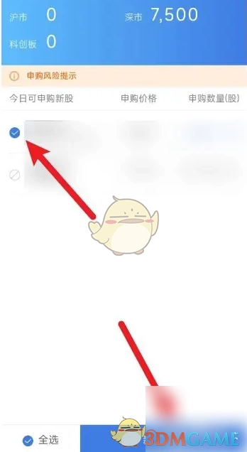 4、在普通账户的新股申购页面,选中打算申购的新股,然后点击页面底部的【新股申购】按钮。