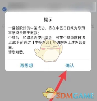 5、最后在弹出的提示窗口中,点击【确认】进行申购即可。