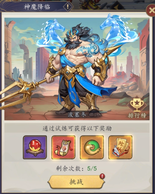 1. 每天有固定次数可挑战神魔,每日24时重置。