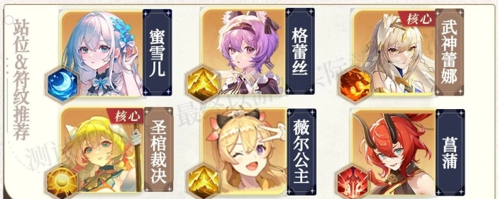 1. 阵容构成:武神蕾娜、圣棺裁决、蜜雪儿、格蕾丝、薇尔公主、菖蒲