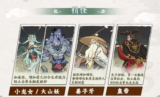 6、精怪角色包括:小龙女、大山妖、姜子牙以及皇帝