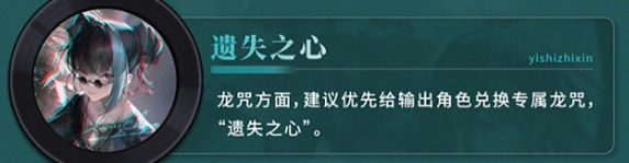 1. 提议玩家优先挑选专属龙咒 - 遗失之心。