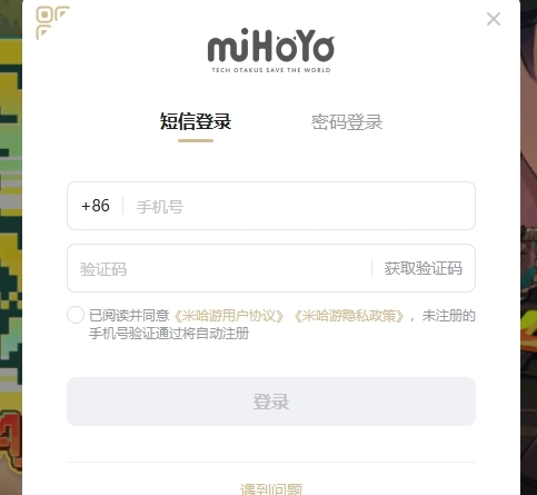 2、若选择米哈游通行证登录,仅需填写手机号与验证码就行。