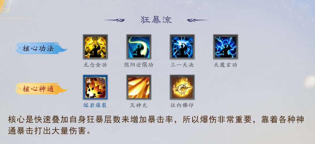 挑选神通之际,应尽可能选取同属性的神通,不过也需搭配其他属性的神通来辅助。优先考虑土属性和无属性,当使用土属性神通后,紧接着使用的金属性神通将额外获得伤害加成。