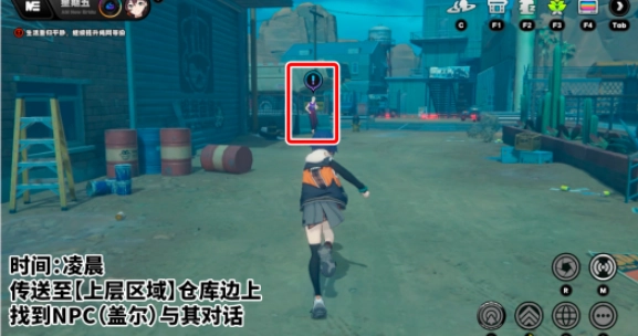 1. 进入游戏之后,打开地图,接着在凌晨时分前往【上层区域】仓库旁边。
