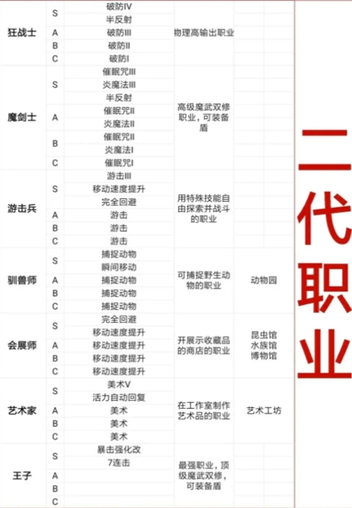魔刃、狂战士、游击者、驯兽师、艺术家、会展策划者、王子殿下