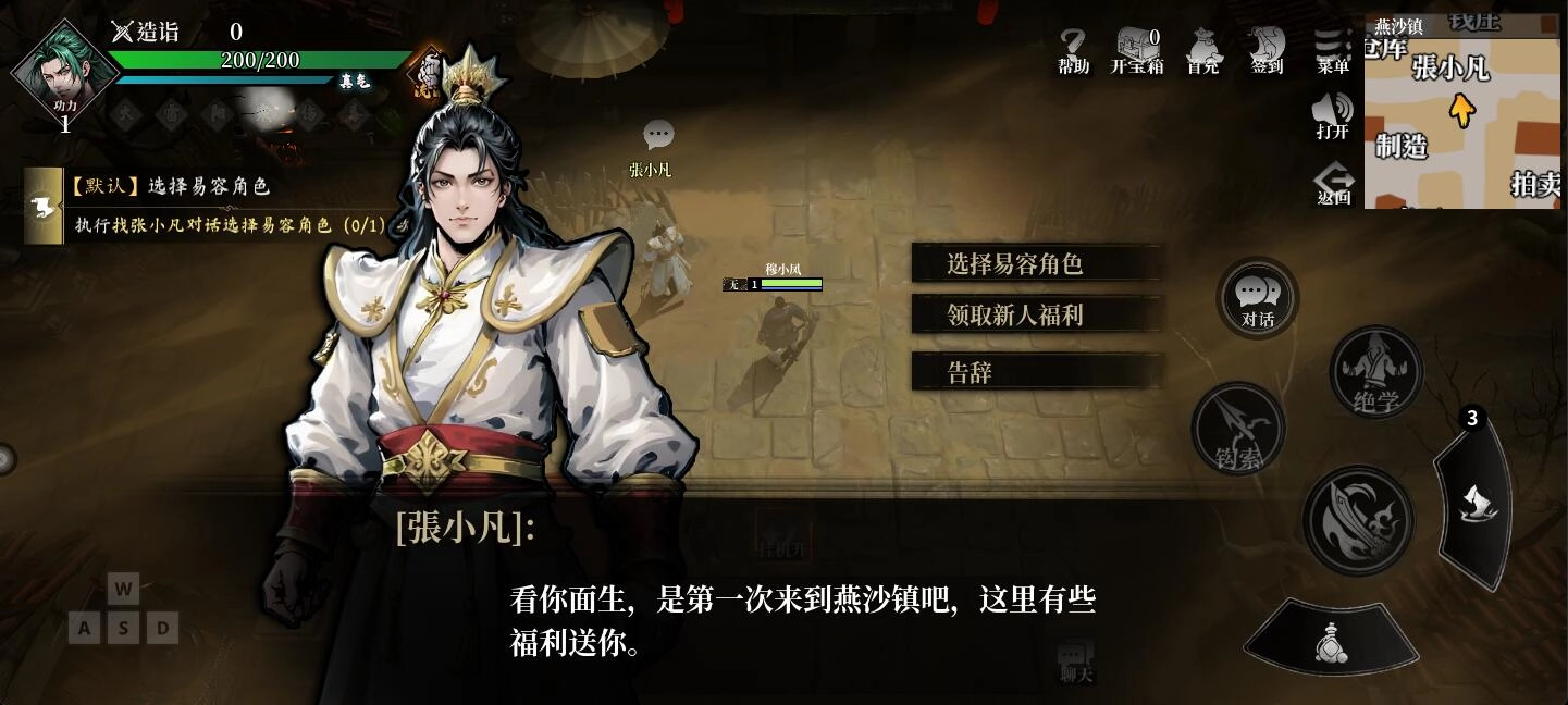 进入游戏第一件事就是跟着指引找到张小凡,对话选择易容角色。