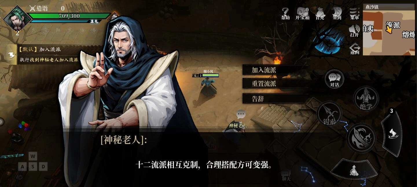 继续跟着指引走,需要找到神秘老人加入流派【划重点】