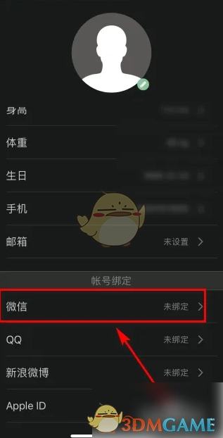 3、进入【个人信息】页面,随后点击【微信】。