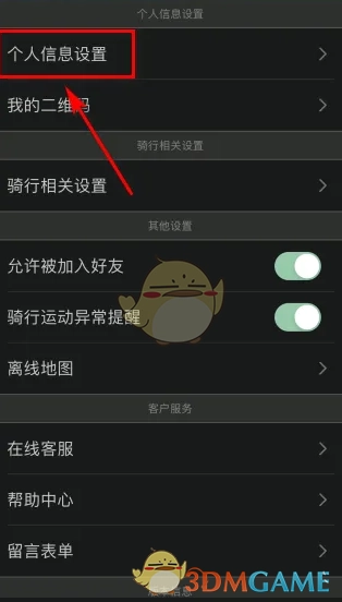 2. 进入【设置】页面,随后点击【个人信息设置】功能。