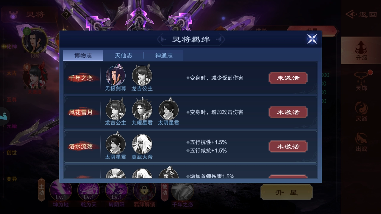 激活所需条件:魔界冥王、真武大帝、月宫仙子