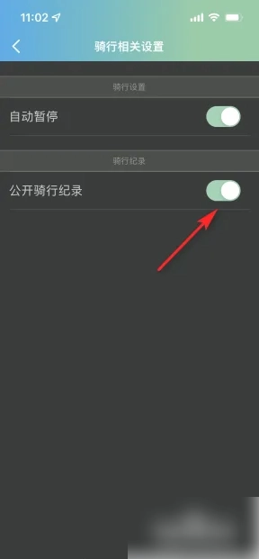 4、进入【骑行相关设置】页面,点击开启公开骑行记录即可。