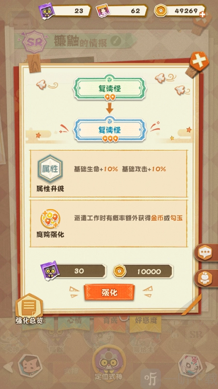 2. 提升基础属性,式神每获得一级天赋提升,其基础属性就会相应增加。
