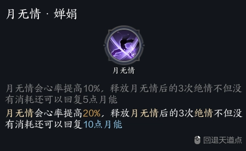特别说明——鉴于怒愿机制的优先级高于绝情·婵娟(月无情后三个右键回能),当这两者同时触发时,右键将优先不消耗能量,这种情况下就需要使用左键来填补剩余的能量缺口。