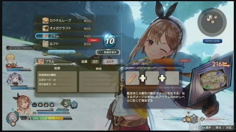 在炼金系统方面,从今日公开的实机试玩中能够发现,它是在前一代系统的基础上进行改良的。并且在炼金画面里,莱莎的动作表现更为细腻。在外部地图,莱莎可以通过骑乘的方式加快在地图上的行走速度,还能进行挖掘等操作。这一代新增的湿身特效也十分亮眼,能看到莱莎从水面出来后,服装上水滴落下的细致呈现。