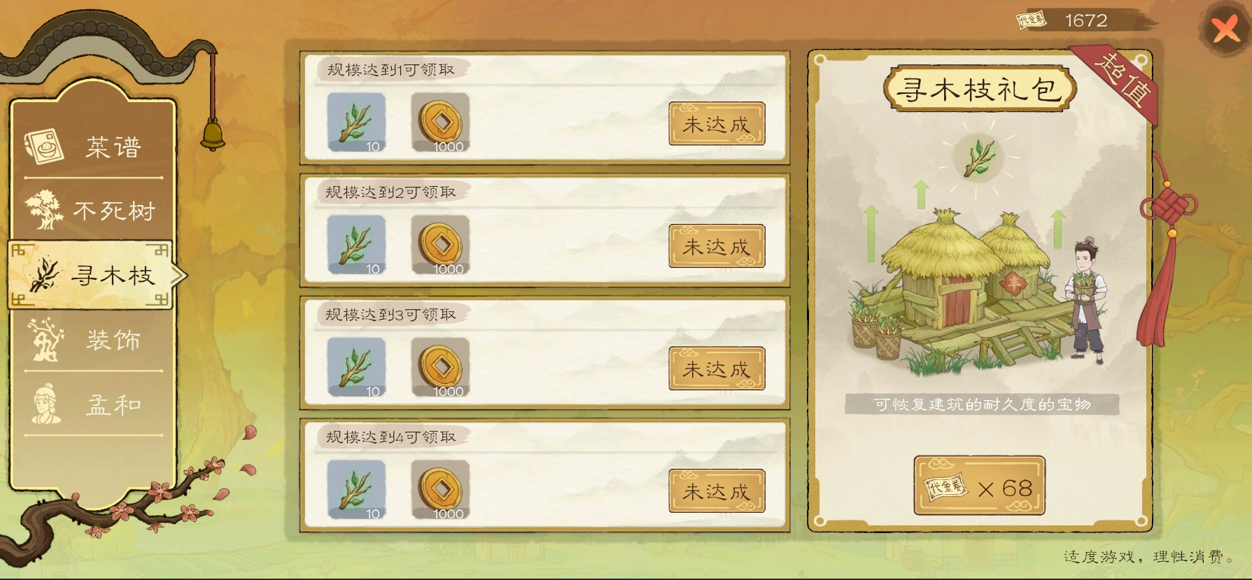 顾名思义,获得一些免费无法获得的装饰品,使你的桃源更好看。