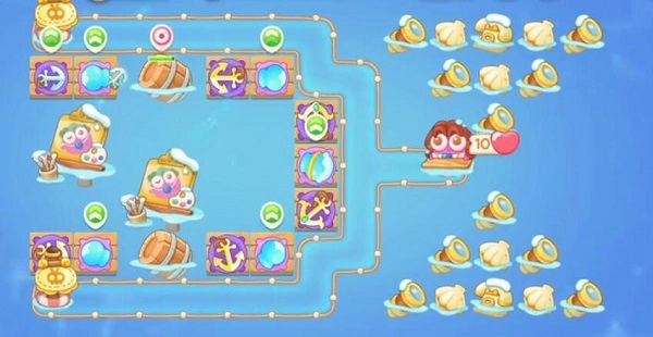 1、一开始,地图上就已有两个船锚,直接进行升级操作,同时清理障碍物与兔子。