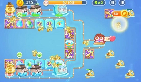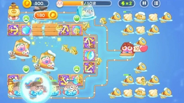5、要是后期火力不足,就再多放置几个船锚。到第九波的时候,冰冻兔会让武器冰冻。