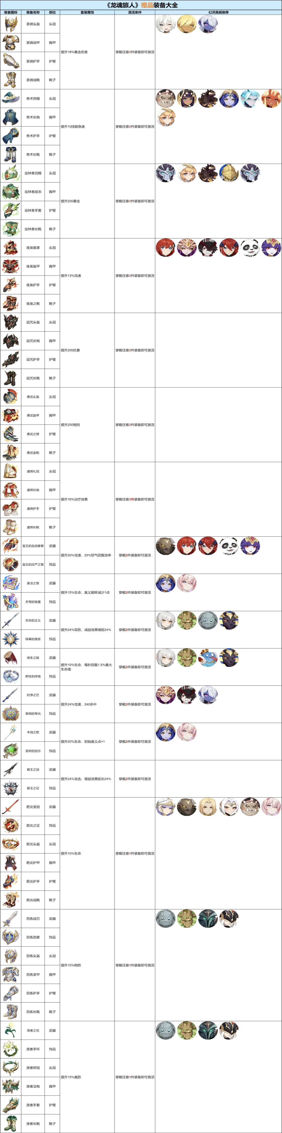 在《龙魂旅人》游戏里,装备系统的设计颇为精细。每个角色最多能够穿戴六件装备,且装备有着不同品质之分,橙色装备属于高品质装备。接下来为大家呈上《龙魂旅人》橙品装备大全及幻灵佩戴推荐!