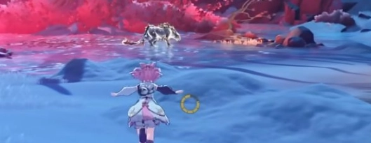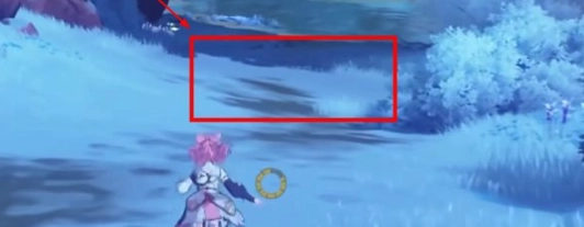 2. 沿着小地图右侧方向移动,便能在河流里发现一只踏光兽。